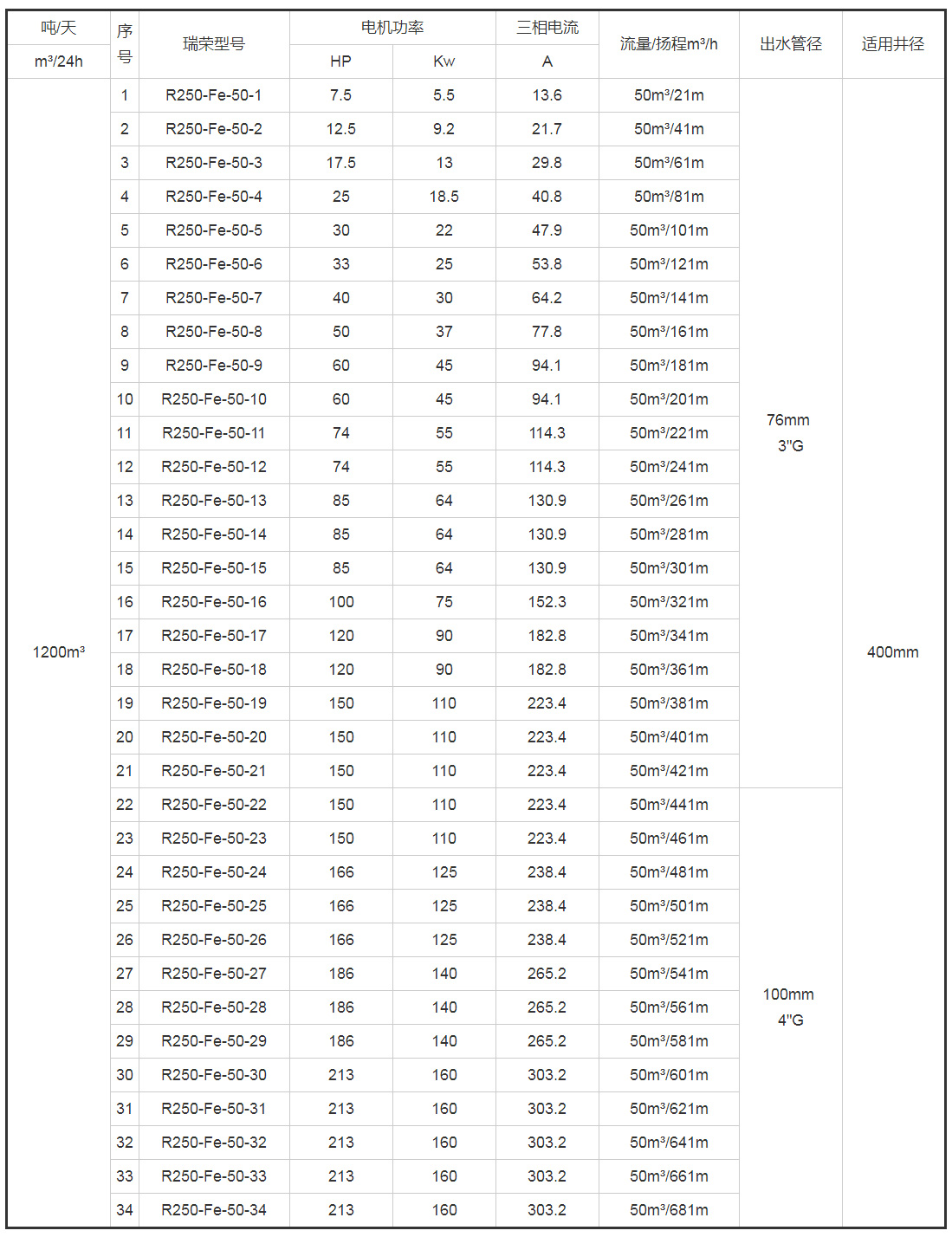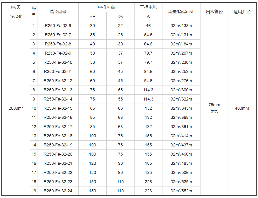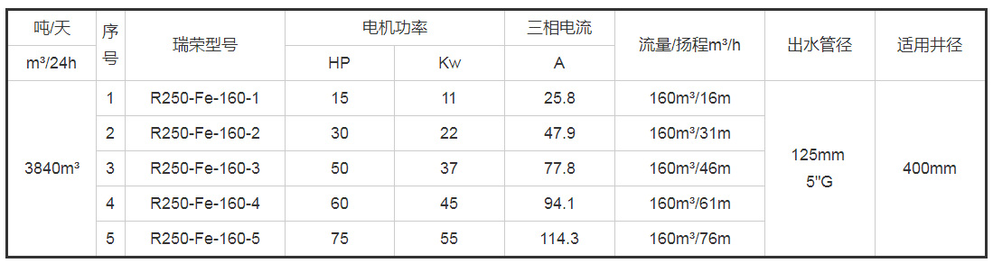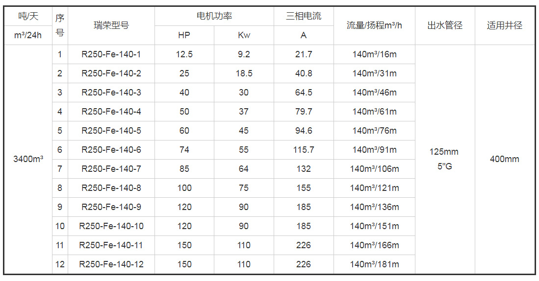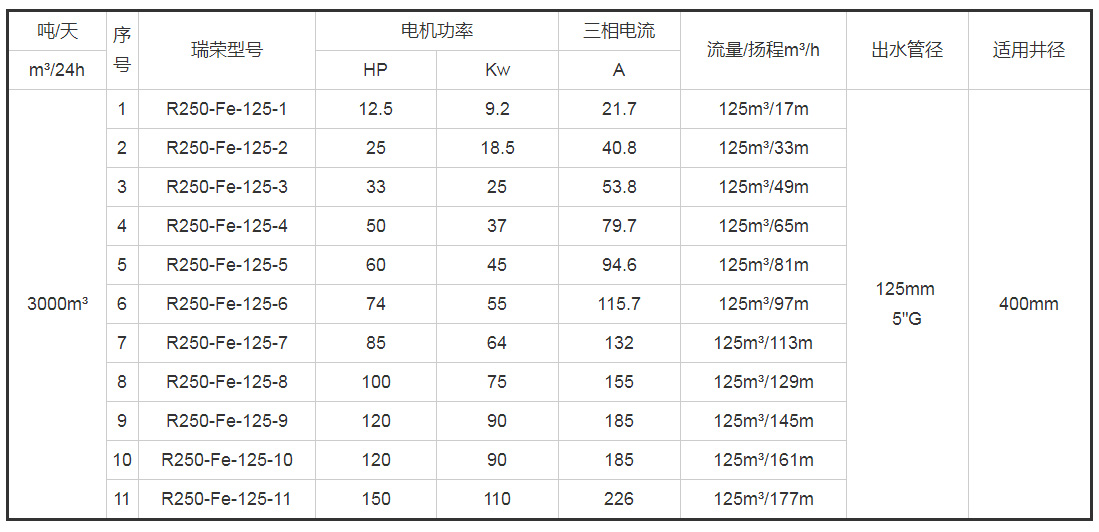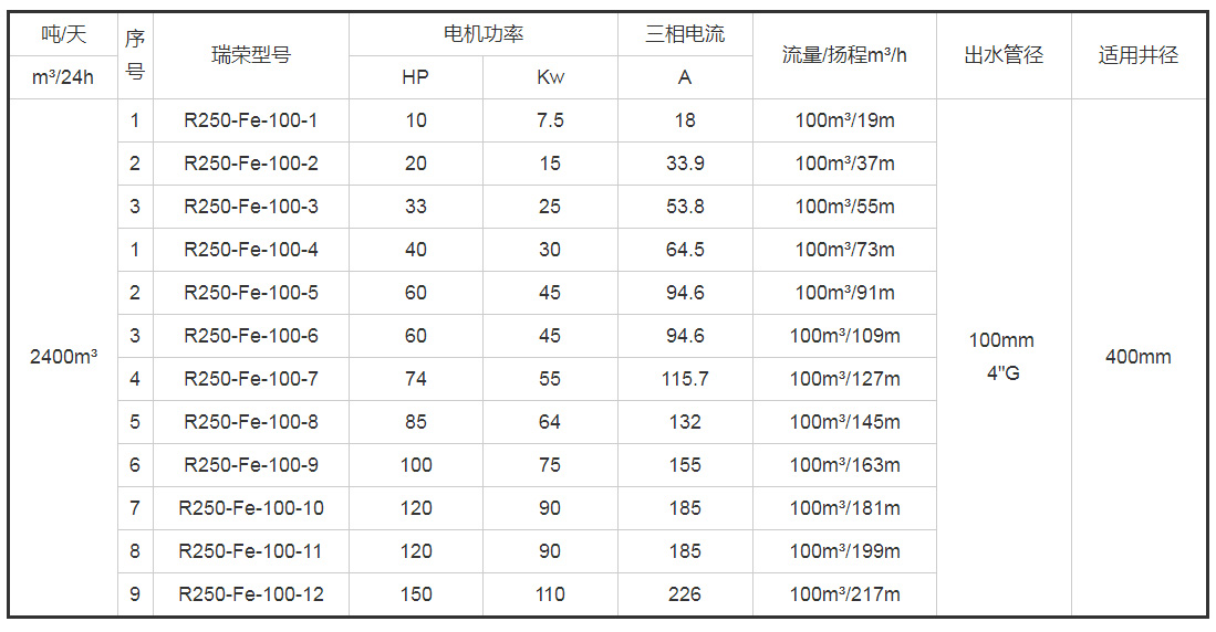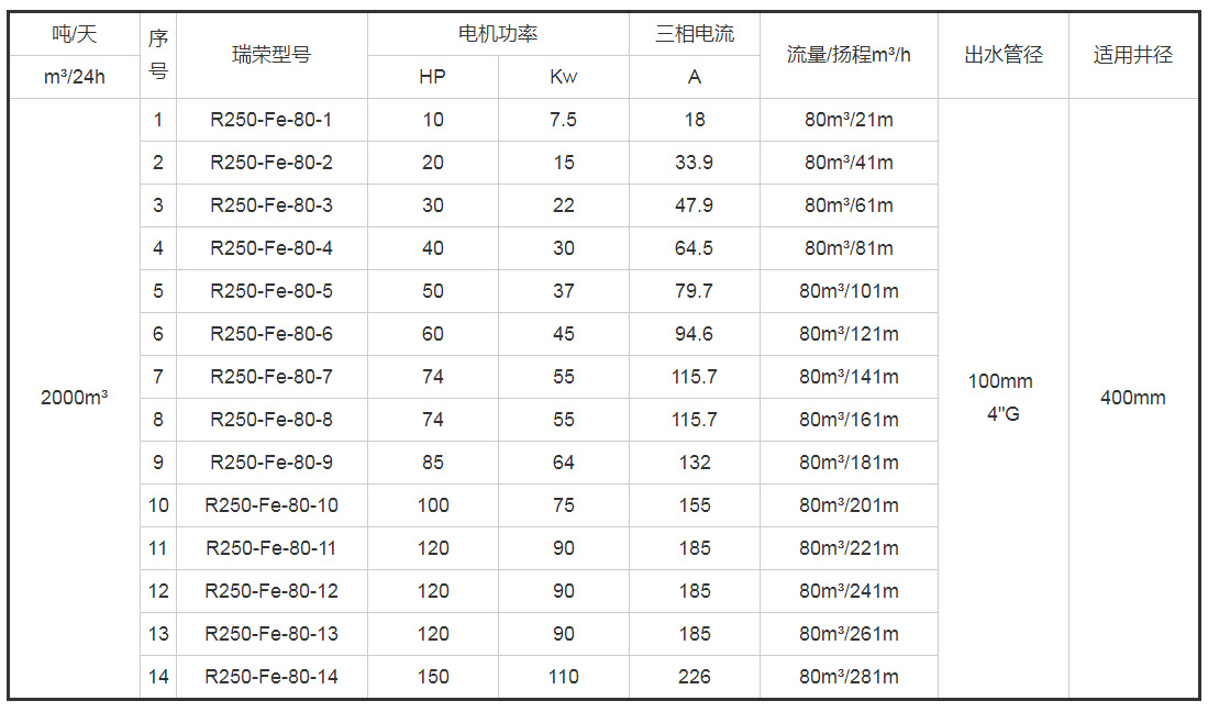 带*号的型号为10寸(R250)泵配8寸(R200)电机
